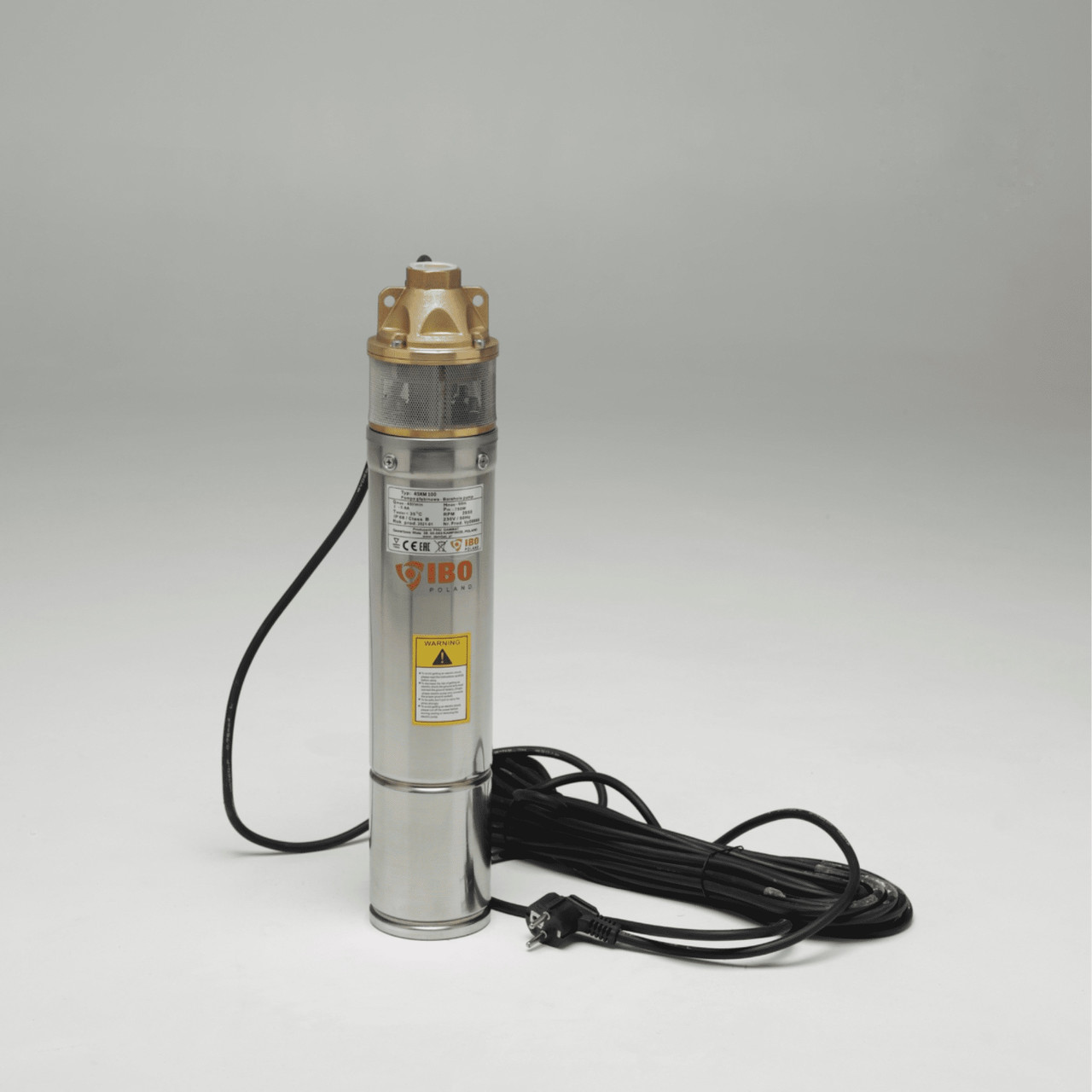 3 "SKM 100 - 3-дюймовий багатосхідчастий периферійний глибинний насос для свердловини. Завдяки малому діаметру в 76 мм, насос для води з можна встановлювати у свердловинах з діаметром труби 3 дюйми. Глибинний насос оснащений кабелем з вилкою довжиною 15 або 20 метрів, що залежить від призначення і потреб клієнта. Також в обмотці двигуна глибинного насоса для скважини та криниці встановлений тепловий захист, а вбудований пусковий конденсатор дозволяє встановити насос IBO 3 "SKM 100 відразу після розпакування.